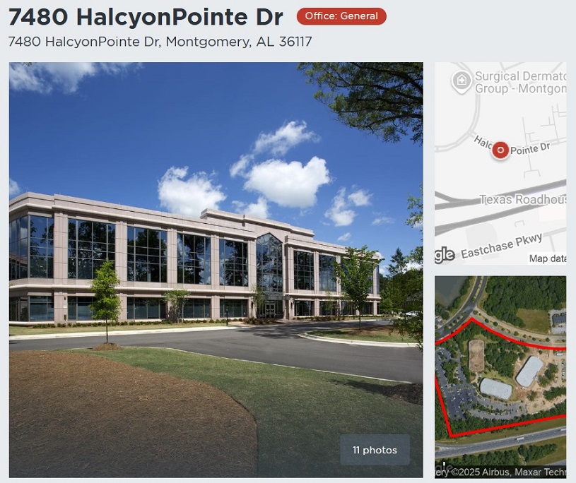 Halcyon Pointe, Building I, a Class "A" Office Building is developed on a wooded 15.5 acres site, with convenient access to Taylor Road I-85 (Exit 9), Montgomery, AL. Current tenants include Home Builders Association of Alabama, Morgan Stanley Smith Barney, Alabama Tax Tribunal, Progressive Insurance, Johnson & Johnson Insurance, BXS Insurance, Inc and Volkert, Inc. Rental rate at $21.00/RSF (Full Service). Five (5) year minimum lease term. Ample on-site parking provided at no additional cost. Immediate occupancy. Contact John Stanley, CCIM, for more information at (334) 271-2475. SHOWN BY APPOINTMENT ONLY